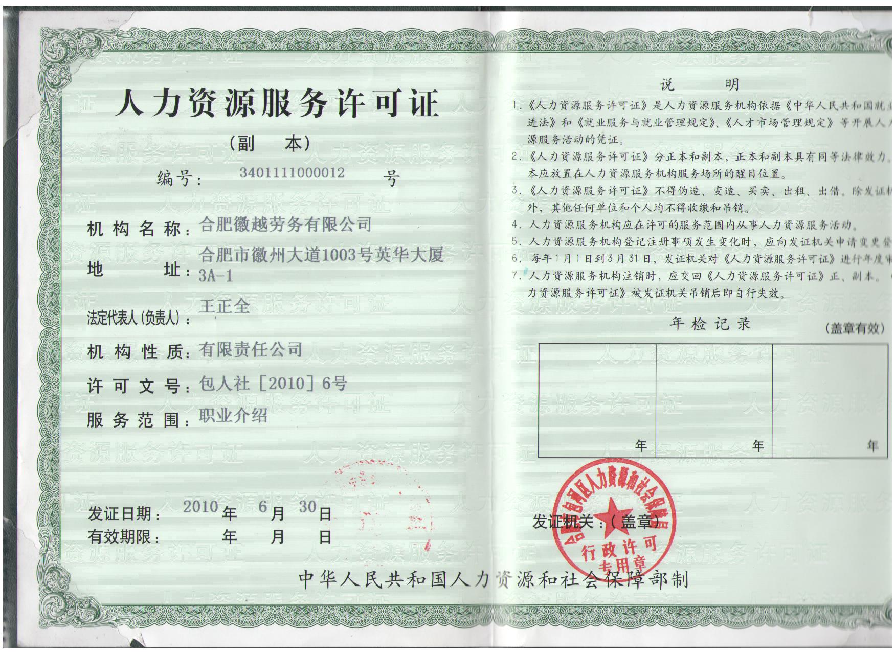 徽越公司自2008年中建總公司及多家世界500強(qiáng)企業(yè)授權(quán)招工資格以來,在同行業(yè)知名度信譽(yù) 度較高。徽越公司是安徽省一家經(jīng)過合肥市工商行政管理局(安徽省工商行政管理局備案審核)、合肥市勞動和社會保障局及合肥市建設(shè)委員會(安徽省建設(shè)廳資質(zhì)審批)審核批準(zhǔn)成立的正規(guī)合法的且具有豐富建筑勞務(wù)輸出和項(xiàng)目施工管理經(jīng)驗(yàn)的信譽(yù)良好的勞務(wù)派遣和勞務(wù)分包...>>查看詳情